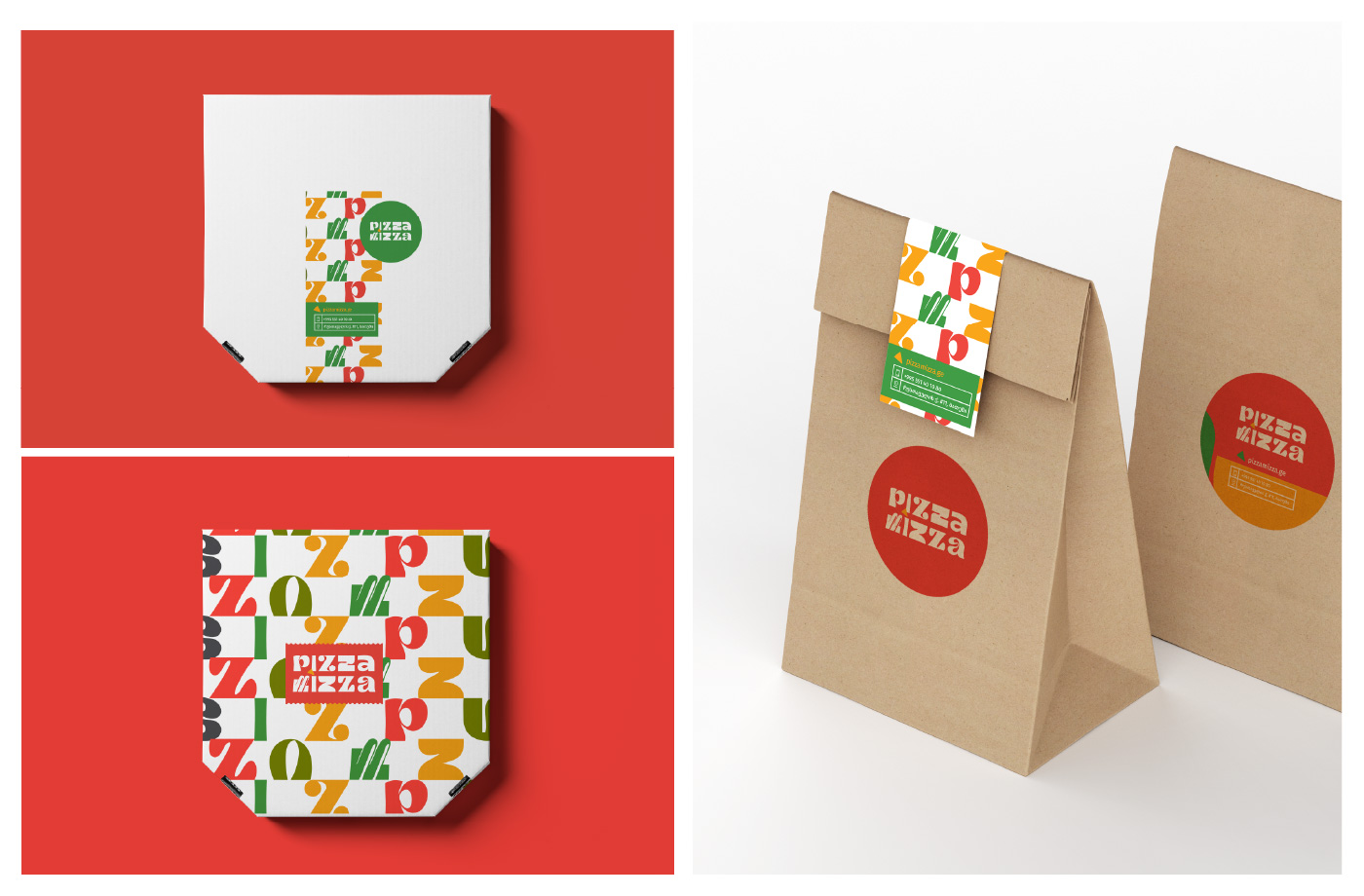 მიზანი: პიცერიისთვის ლოგოს რედიზაინი, პროდუქტის შეფუთვა და ვიზუალური სტილის შექმნა.